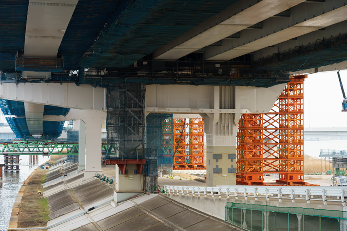橋梁などの現場で足場を組む際、下に川が流れていたり道路が通っていたりする場合は地上から足場を組み上げることが難しくなります。そこで構造物から吊り下げる形で設置するのが「吊り足場」です。